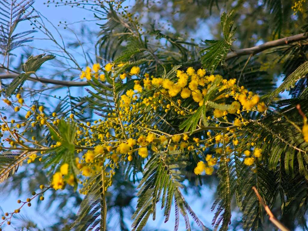 Цветение мимозы в Сочи длится долго — ярко желтые «пушистики» можно наблюдать до конца марта. Цветение происходит волнообразно, поэтому даже после зимних похолоданий многие почки только готовятся распуститься.