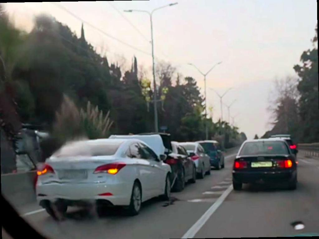 Четыре автомобиля столкнулись в левой полосе движения в сторону Адлера. Легковушки выстроились «паровозиком», затрудняя движение. Свидетели сообщили, что образовалась большая пробка, простирающаяся от Хосты до Адлера.